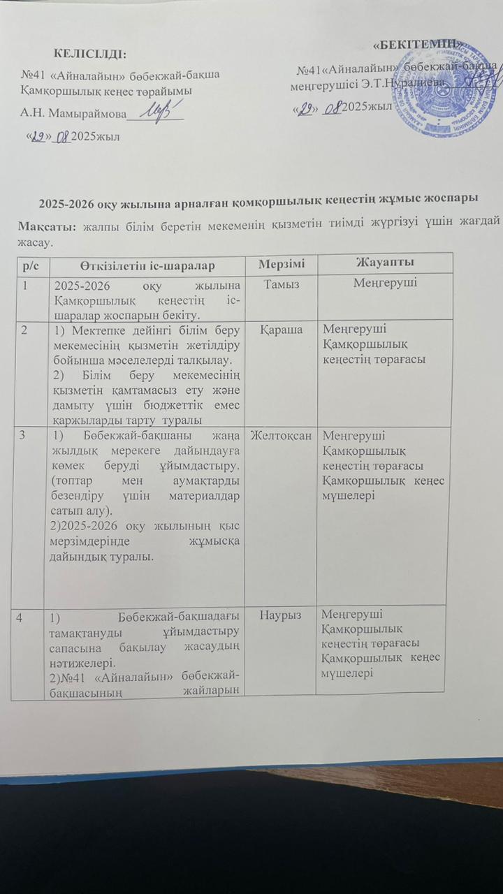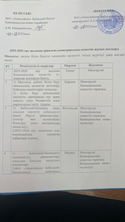 Қамқоршылық кеңес » №41 Айналайын бөбекжай-бақшасы
