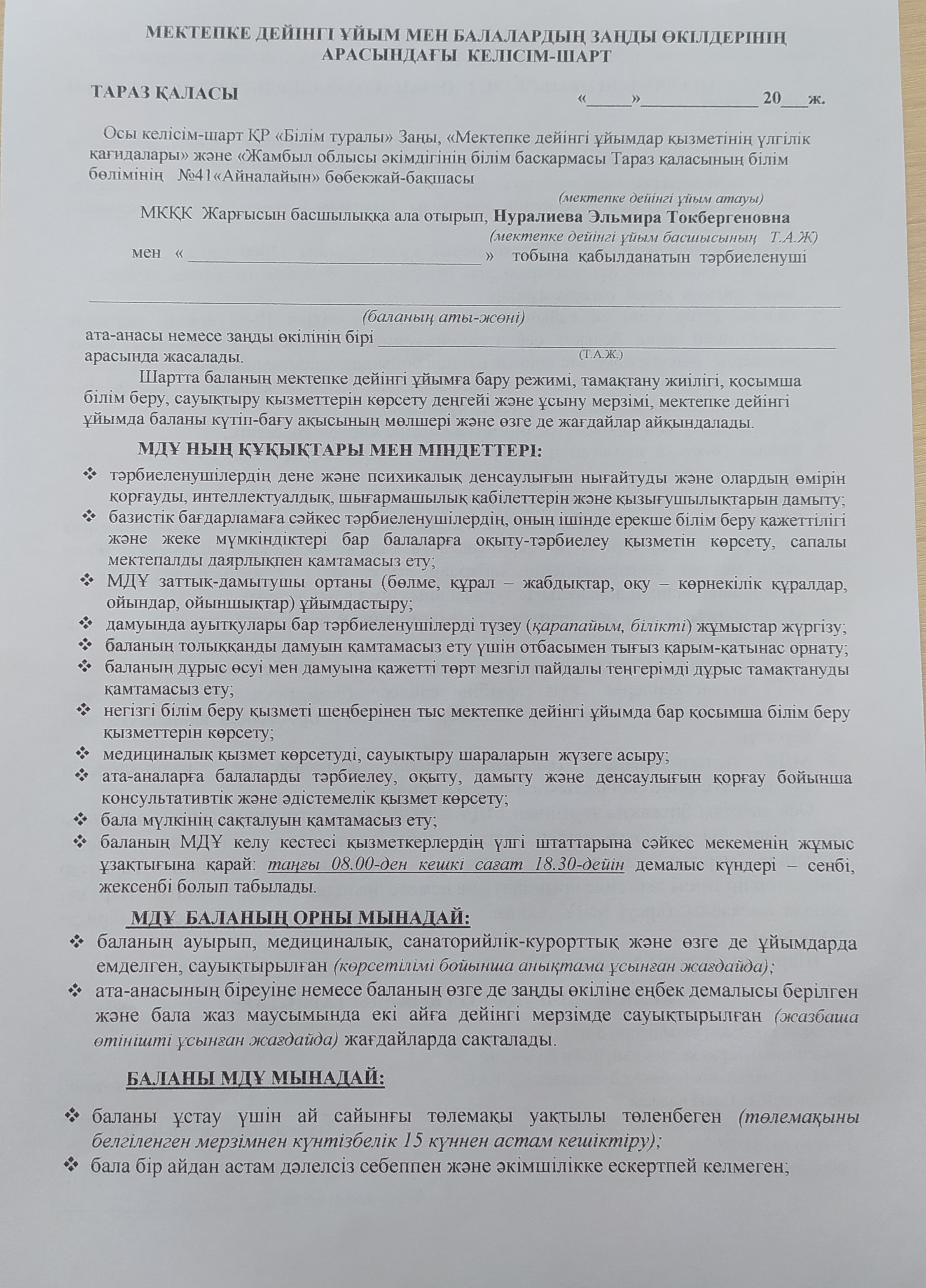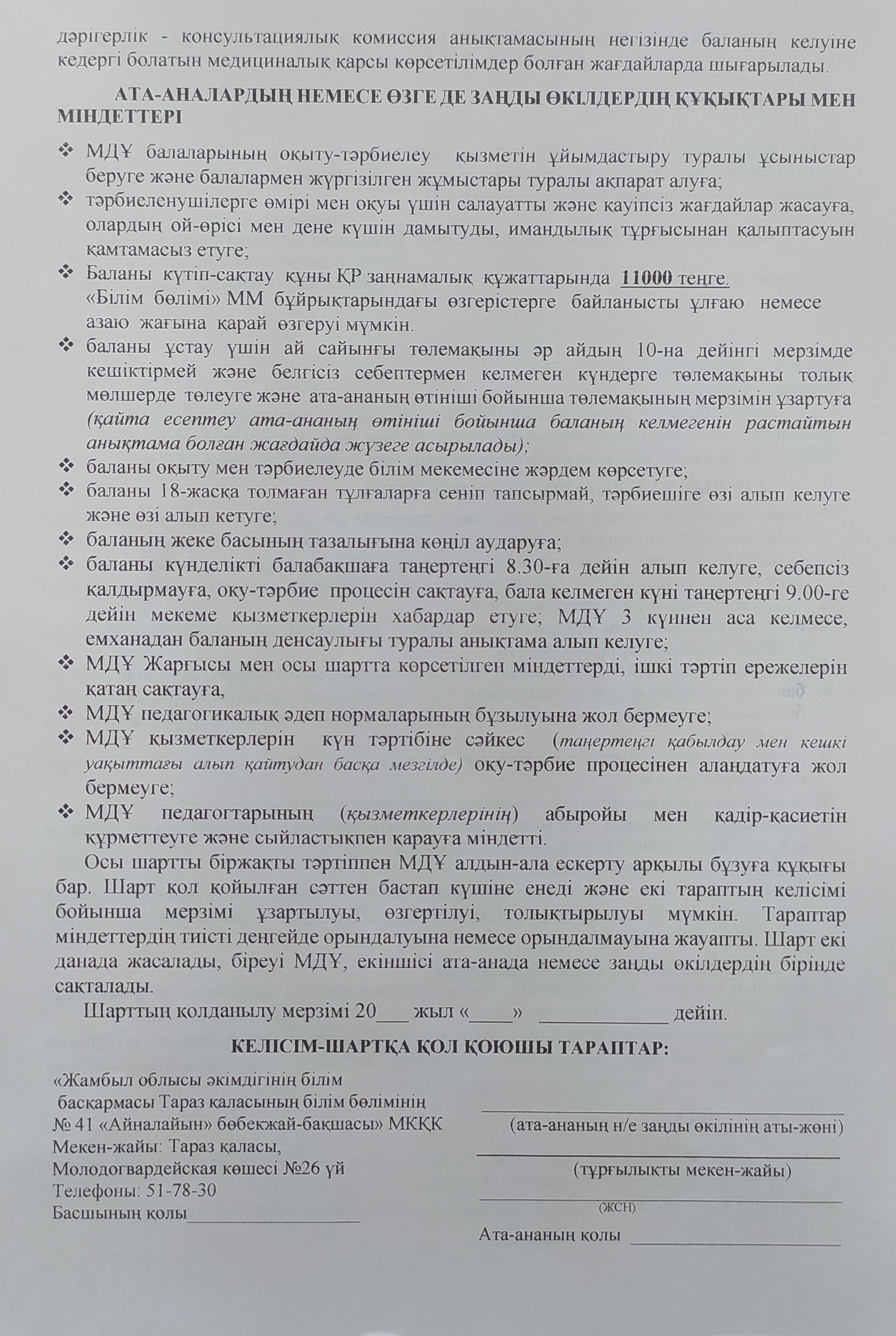 Келісім шарт » №41 Айналайын бөбекжай-бақшасы